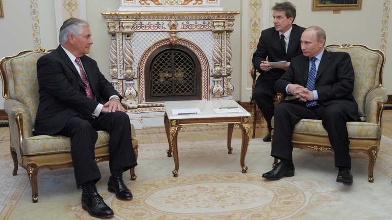 FILE PHOTO: Then Russian PM Putin and Exxon Mobil CEO Rex Tillerson attend meeting at Novo-Ogaryovo state residence outside Moscow